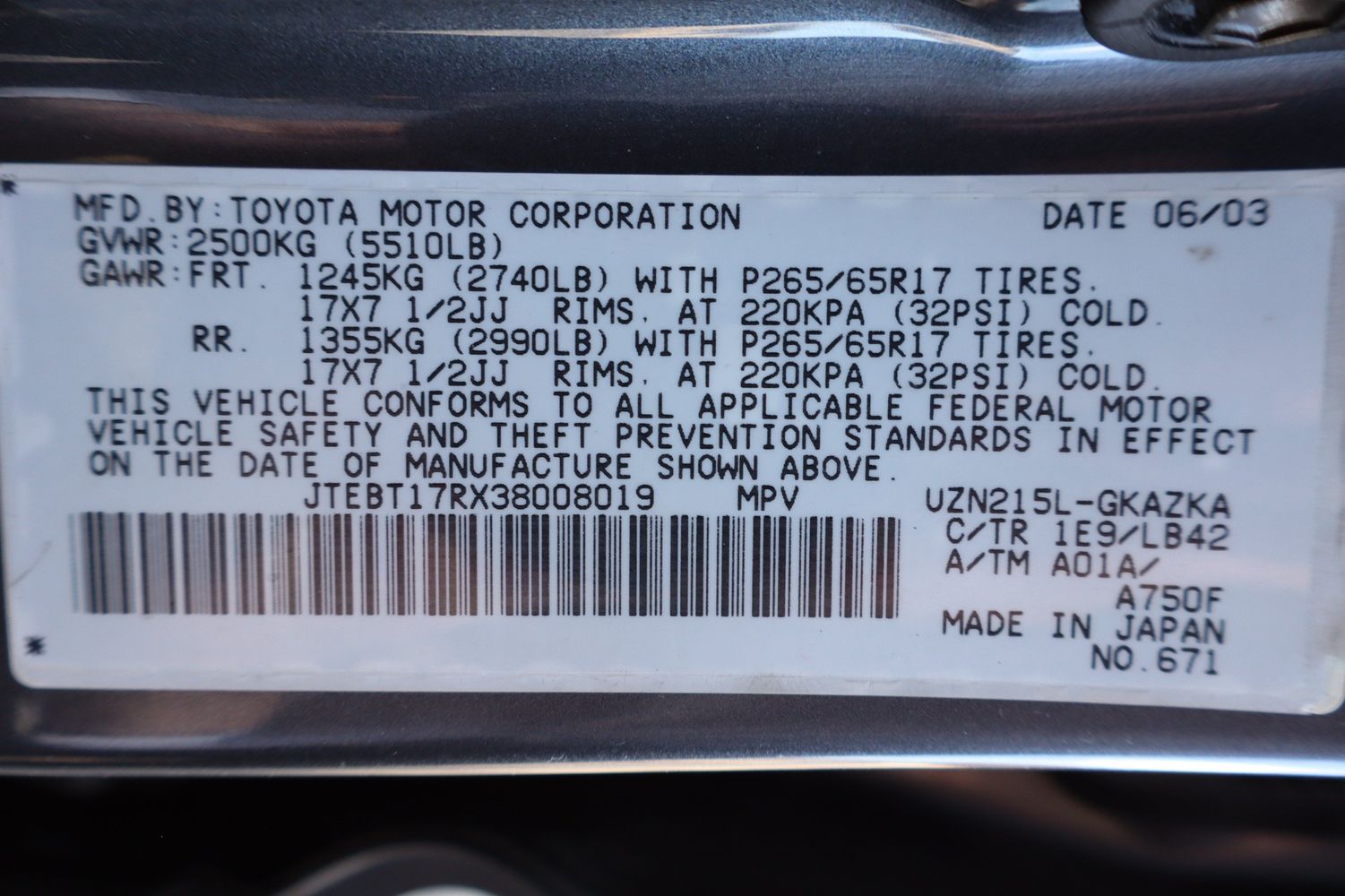 Cargo floor type: Carpet cargo area floor
