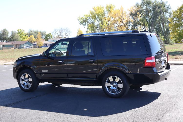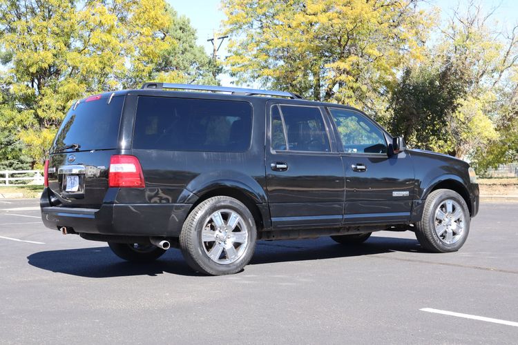The 2008 Ford Expedition EL Utility 4D Limited 4WD 5.4L V8 is a full-size SUV built for comfort, power, and versatility. Its robust 5.4-liter V8 engine provides strong acceleration and excellent towing capacity, making it ideal for hauling trailers, boats, or family gear. The extended-length EL model offers exceptional interior space, with three rows of seating and generous cargo room behind the third row. The Limited trim adds a touch of luxury with leather-appointed seats, woodgrain accents, and advanced features like power-adjustable pedals, a premium sound system, and a rear entertainment option. The 4WD system ensures confident handling in all weather and terrain conditions, while the smooth suspension delivers a comfortable and stable ride. With its bold styling, chrome detailing, and commanding road presence, the 2008 Expedition EL Limited 4WD stands out as a capable and upscale SUV perfect for families and adventurers who value strength, space, and refined comfort.