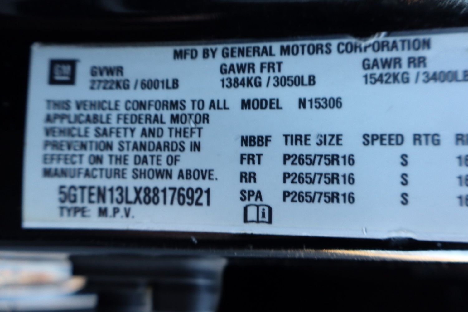 Cargo floor type: Vinyl/rubber cargo area floor