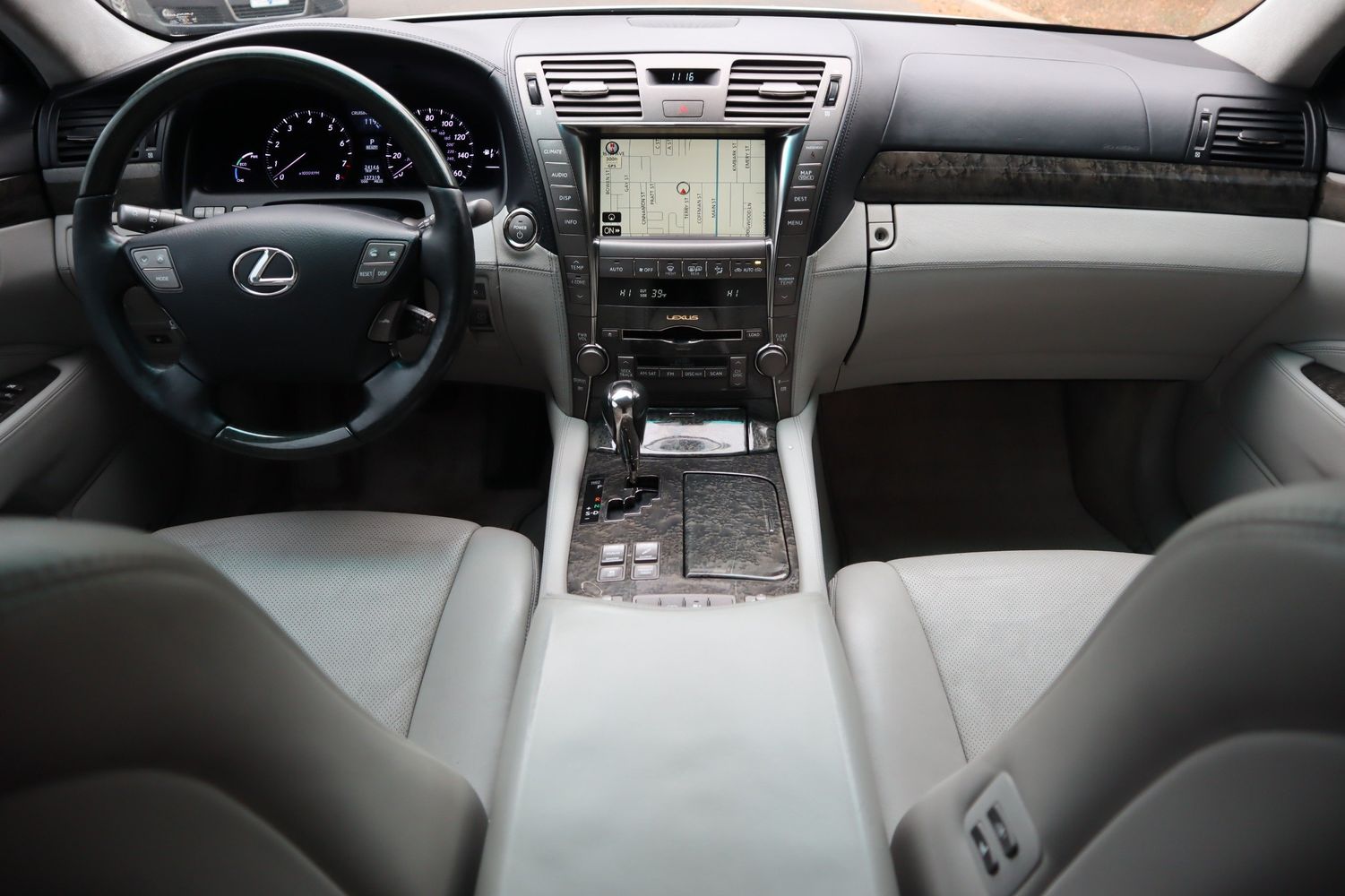 The LS600h is the handsome flagship vehicle of the Lexus lineup and it dazzles the passengers with top-shelf refinement while rewarding the driver with unequivocal power. This particular LS600h is offered with only 2 owners and outstanding routine service history. It is finished in Mercury Silver Metallic and fitted with premium 18'' wheels wrapped in Goodyear tires, fog lights, moon roof, tinted windows and sleek, bumper integrated dual exhaust tips. Clean gray leather and authentic polished trim accents set a welcoming tone to this extra posh interior. Comforting amenities include heated/cooled seats, power rear sunshade, heated steering wheel, push-button start, rear DVD w/ Lexus Premium Sound, power-folding mirrors, power closing trunk and much more!