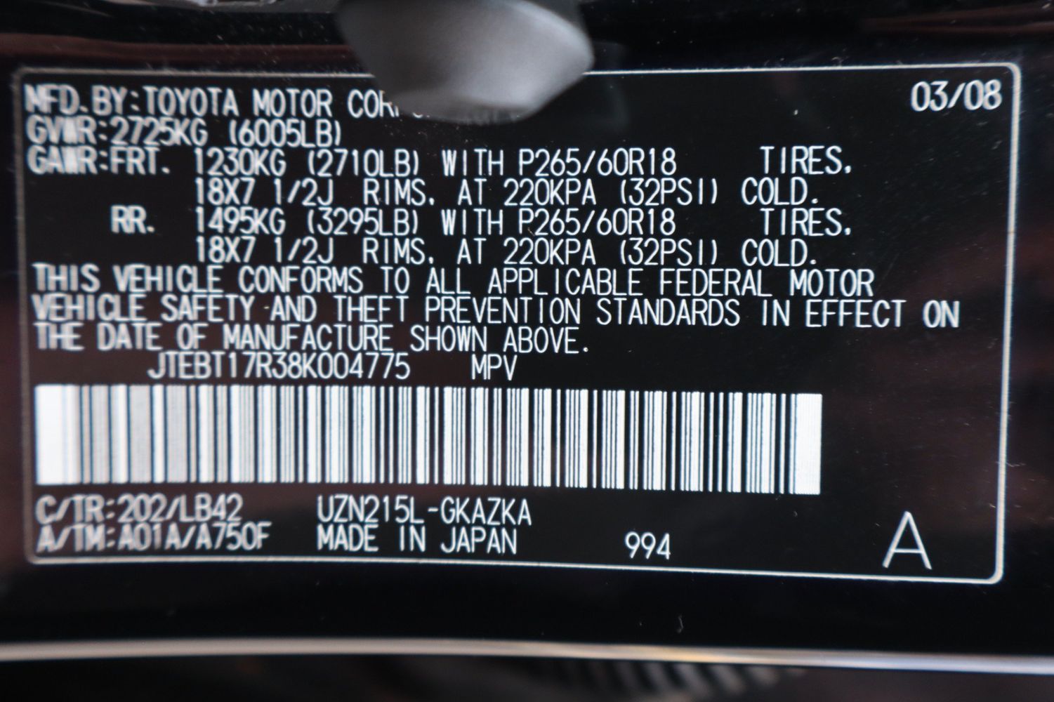 Maximum roof rack load: 120 lbs. maximum roof rack load