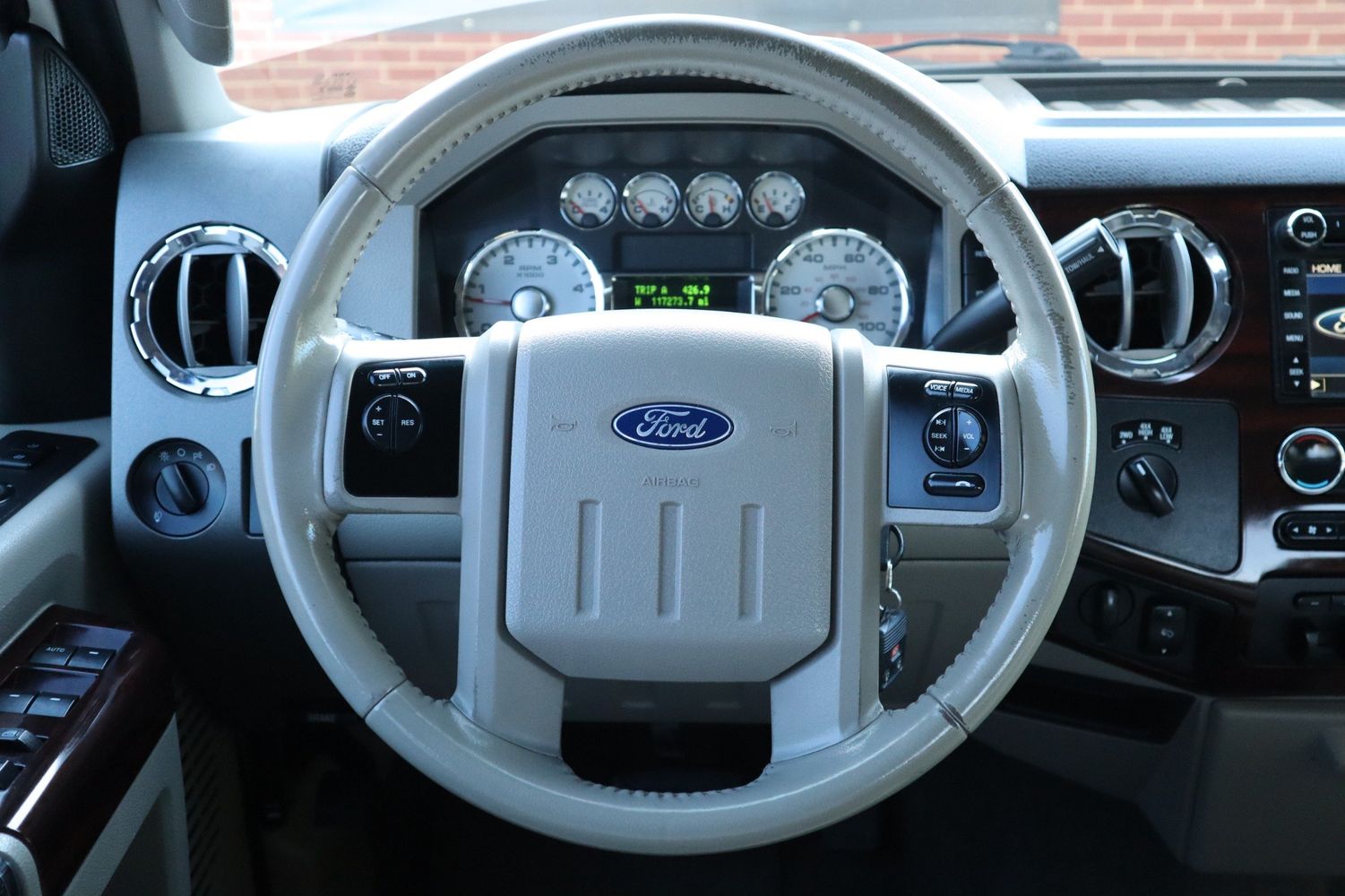 Features a tough and reliable 6.4L Powerstroke Diesel with 6 speed automatic transmission and 4WD. The exterior is wrapped in clean burgundy red, with white clear-coat underneath, comes with side steps, tow package, fog lights and tinted windows. The interior is loaded with options including Gray leather, Microsoft SYNC w/ Bluetooth, aux input, shift on the fly 4WD, wood trim accents, heated seats, steering wheel mounted controls, folding rear seats, dual zone climate control, backup camera in rear view mirror and more!