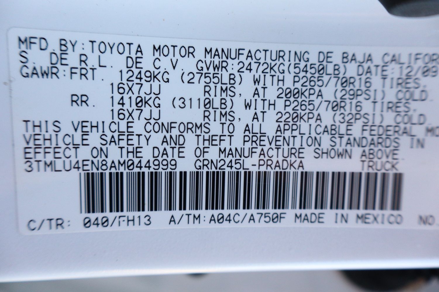 Front seatback upholstery: Plastic front seatback upholstery