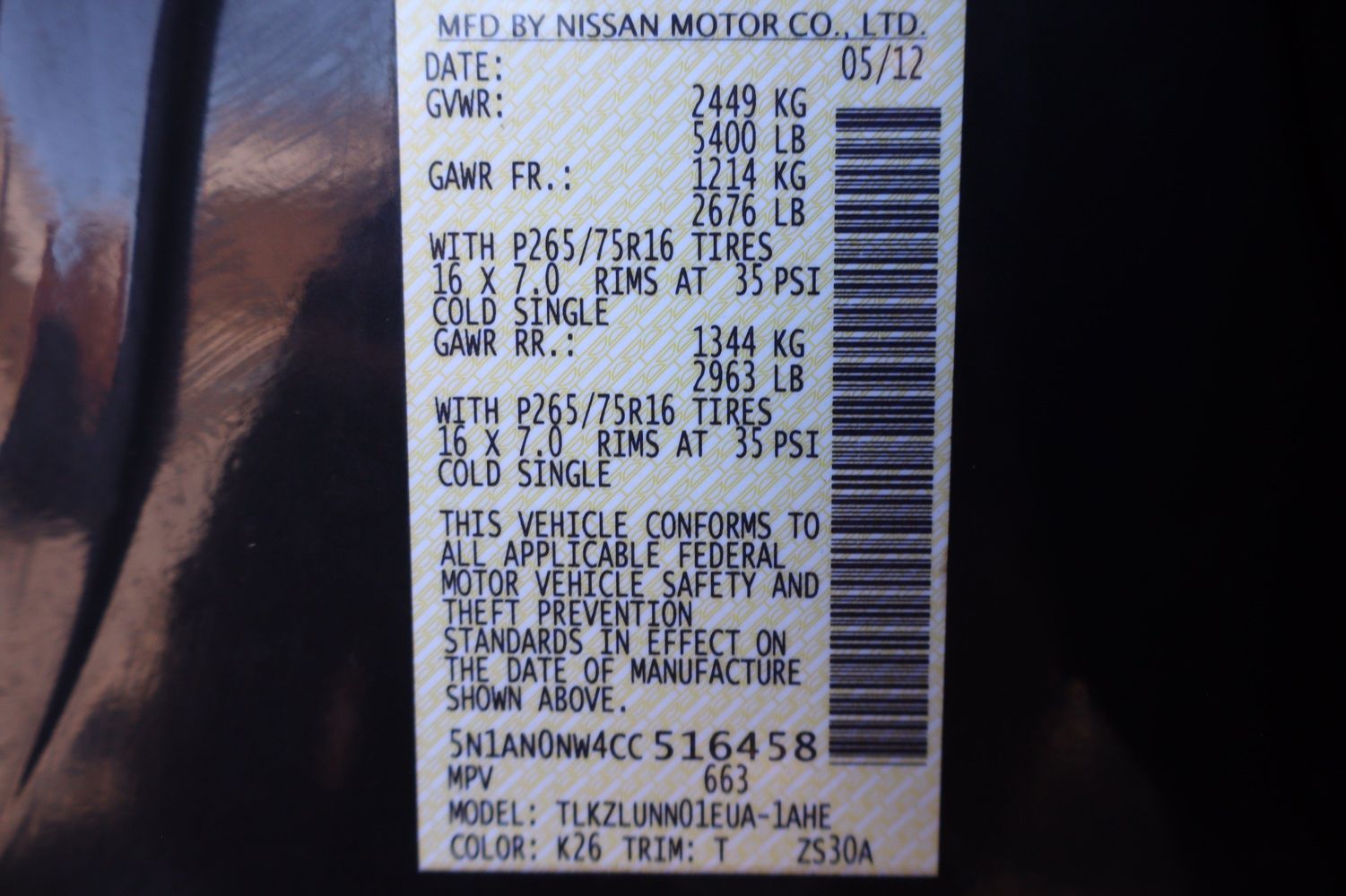 Maximum roof rack load: 150 lbs. maximum roof rack load