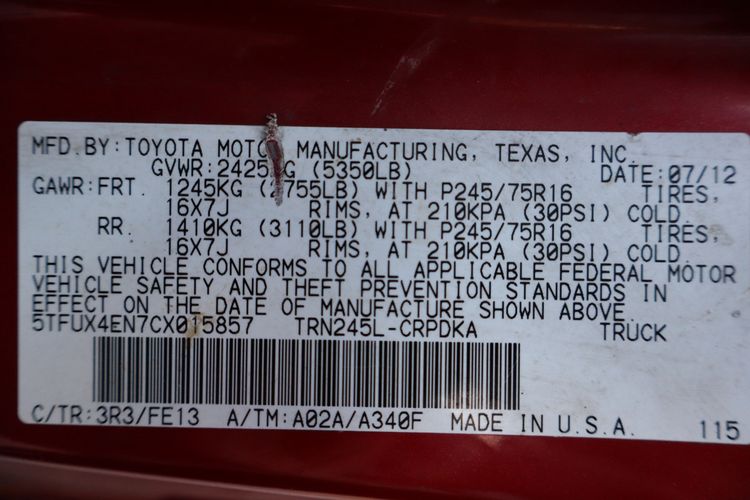 The 2012 Toyota Tacoma Extended Cab 4WD with the 2.7L I4 engine is a versatile midsize pickup that blends reliability, practicality, and off-road capability. Known for its long-lasting dependability, the Tacoma offers solid performance with its efficient four-cylinder engine, making it a great option for those who want a durable truck with respectable fuel economy compared to larger V6 or V8 options. The Extended Cab design provides extra interior space, allowing room for additional passengers or secure storage behind the front seats. With 4WD, this Tacoma is ready to tackle challenging terrain, whether it’s dirt roads, snow, or light off-roading, while still delivering a smooth ride on pavement. The bed is well-sized for hauling gear, tools, or recreational equipment, making it practical for both work and weekend adventures. Inside, it offers straightforward controls and Toyota’s reputation for quality craftsmanship. The 2012 Tacoma remains a smart choice for buyers seeking a smaller truck that balances utility, durability, and everyday usability.