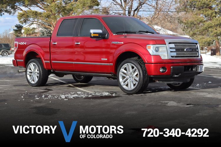 The 2014 Ford F-150 Platinum is a luxury full-size pickup offering power, advanced technology, and premium comfort. It comes with a 3.5L EcoBoost V6, delivering strong towing capacity up to 11,300 lbs. The Platinum trim features premium leather seats, heated and ventilated front seats, a Sony audio system, and SYNC with MyFord Touch for enhanced connectivity. Its exterior boasts chrome accents, 20-inch wheels, and power-deployable running boards, giving it a bold yet refined look. Safety features include trailer sway control, a rearview camera, and advanced airbags. With a spacious cabin and high-end finishes, the 2014 F-150 Platinum is perfect for those seeking both rugged capability and upscale comfort.