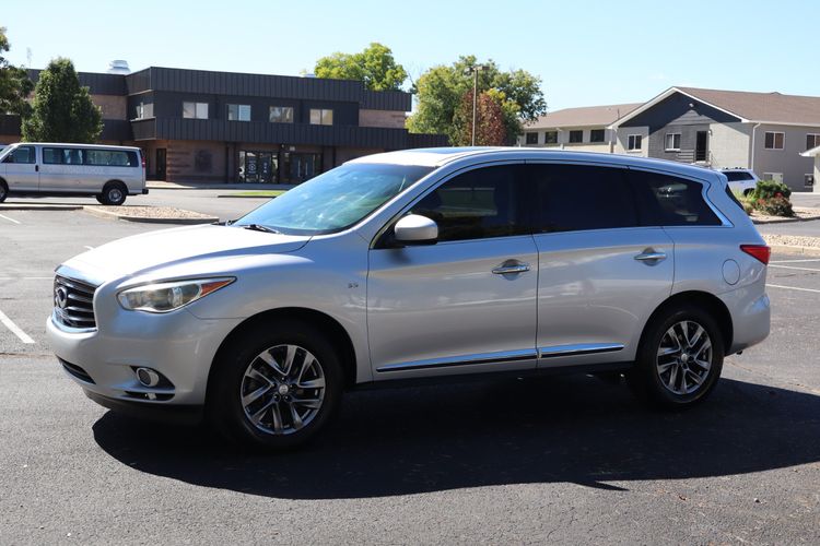 The 2014 Infiniti QX60 Utility 4D with the 3.5L V6 engine is a luxurious midsize SUV designed to deliver comfort, versatility, and premium performance. Its 3.5-liter V6 provides smooth and responsive power, making it well-suited for highway cruising, family trips, or daily commuting. Inside, the QX60 offers a refined and spacious cabin with three rows of seating, high-quality materials, and thoughtful design touches that enhance comfort for both driver and passengers. The flexible seating system makes it easy to access the third row while still accommodating cargo needs, adding to its practicality. Advanced technology features, including a user-friendly infotainment system and available driver-assistance aids, make every journey more convenient and secure. On the road, the QX60 delivers a quiet, composed ride with confident handling that balances performance and luxury. With its elegant styling, premium amenities, and versatile interior, the 2014 Infiniti QX60 is an excellent choice for those seeking a family-friendly SUV with a strong focus on comfort and sophistication.