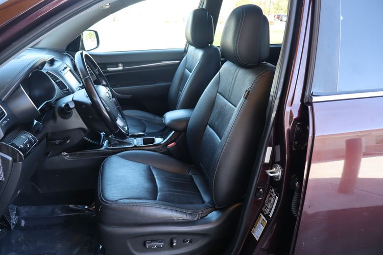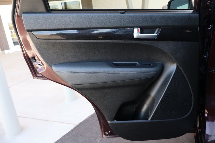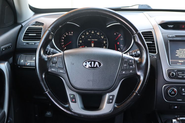 The 2014 Kia Sorento SX is a midsize SUV that combines performance, comfort, and versatility. Equipped with a 3.3-liter V6 engine producing 290 horsepower and 252 lb-ft of torque, it offers responsive acceleration and a towing capacity of up to 3,500 pounds. The Sorento SX achieves an EPA-estimated fuel economy of 18 mpg in the city and 24 mpg on the highway. Inside, the Sorento SX features leather seats, a panoramic sunroof, and an 8-inch touchscreen with navigation. Safety features include a rearview camera and blind-spot detection. With seating for up to seven and ample cargo space, the Sorento SX is well-suited for families seeking a reliable and stylish SUV.