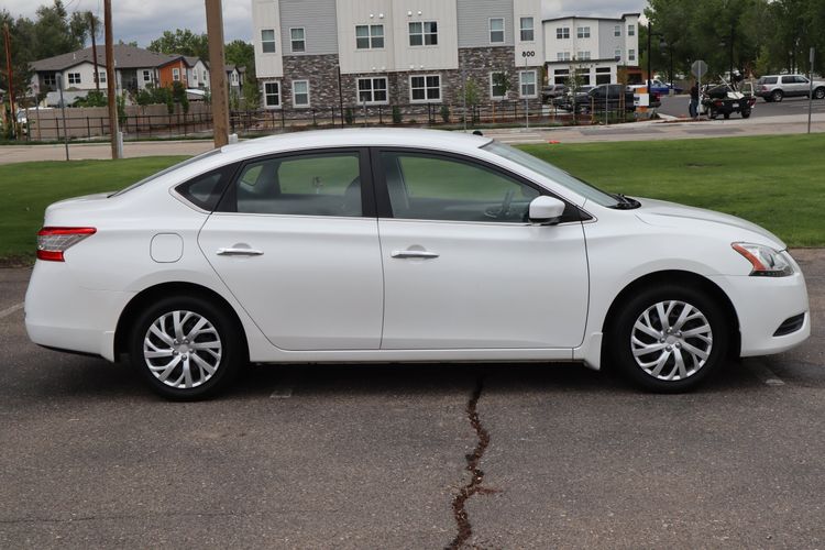 2014 Nisan Sentra SL with a clean CARFAX reporting no previous accidents or damage; Last owned in Colorado! The power comes from a 1.8L I4 engine attached to a CVT transmission supported by FWD. The exterior is finished in Aspen white alongside a cloth charcoal gray interior. Amenities include cruise control, climate control, power mirrors, power windows, traction control and much more!