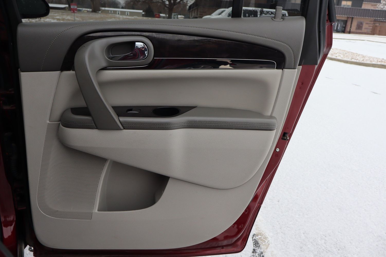 The 2015 Buick Enclave Leather is a stylish and spacious midsize SUV offering a comfortable ride and premium features. Powered by a 3.6L V6 engine with 288 horsepower and a six-speed automatic transmission, it provides smooth acceleration and a quiet cabin. Available in all-wheel drive, the Enclave is designed for stability and control. The Leather trim includes heated leather seats, a power-adjustable driver's seat, a rearview camera, and Buick’s IntelliLink infotainment system with Bluetooth and a touchscreen display. With three-row seating for up to seven passengers and generous cargo space, it’s perfect for families. Safety features like blind-spot monitoring and rear cross-traffic alert enhance security. The 2015 Enclave balances luxury, practicality, and reliability.