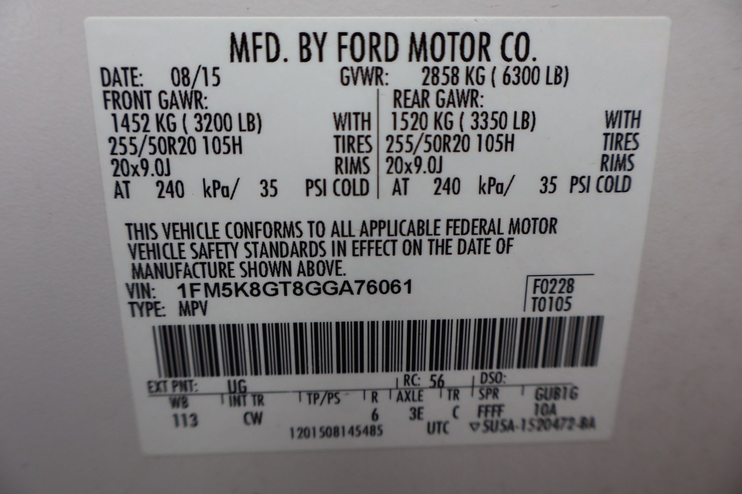 Third-row seat upholstery: Vinyl rear seat upholstery