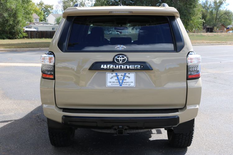 Clean Car Fax w/ zero accidents and excellent service history. Features a reliable and refined 4.0L V6 with sharp 6 speed automatic transmission and 4WD. The exterior is uniquely colored in "Quicksand" with Black TRD wheels, all terrain tires, fog lights, tinted windows, rock rails/side steps and tow package. The interior includes Black leather, color touch screen LCD display, backup camera, navigation, Bluetooth, aux/usb input, power windows/locks, power sliding rear window, heated seats, 120V plug in, metal trim accents, steering wheel mounted controls, floor mats, plenty of cargo room and more!