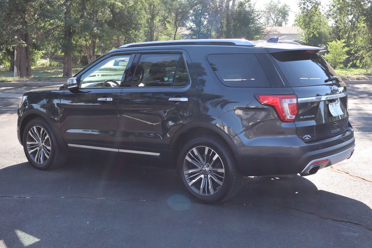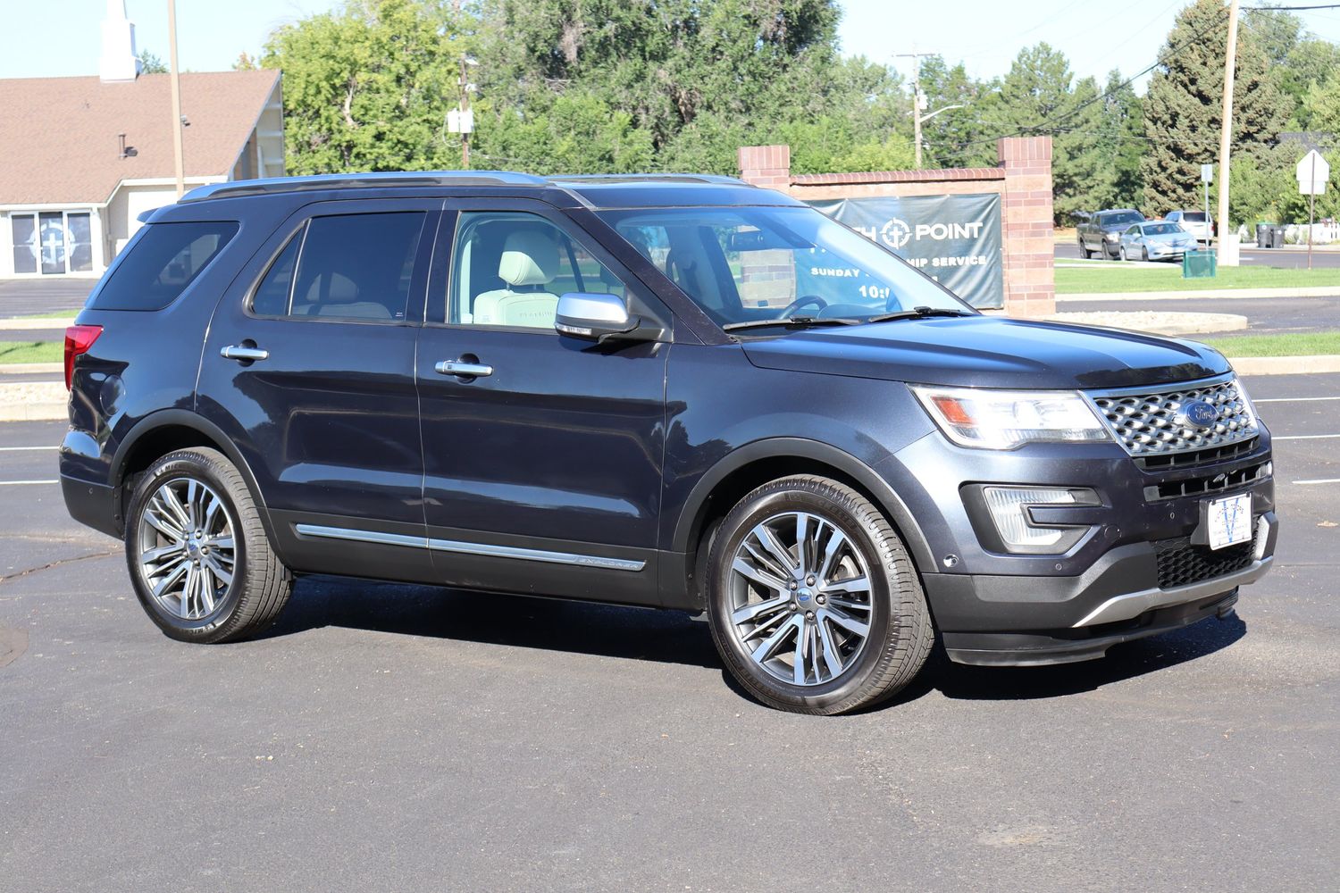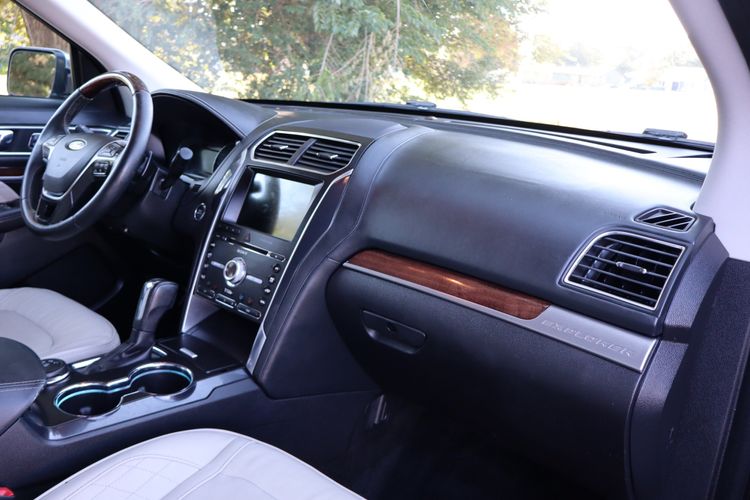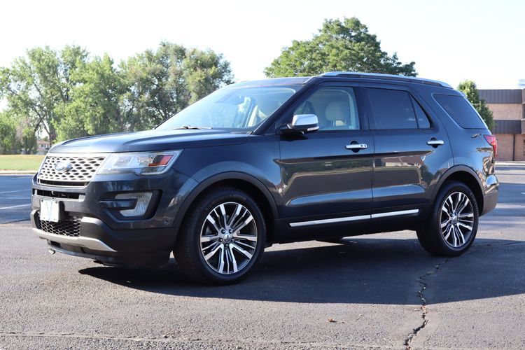 The 2017 Ford Explorer Utility 4D Platinum 4WD 3.5L V6 Turbo is a full-size SUV that blends power, luxury, and advanced technology. Under the hood, it boasts a 3.5-liter EcoBoost V6 turbocharged engine delivering 365 horsepower, giving it strong acceleration and confident towing ability. The 4WD system with Terrain Management ensures stability and traction across snow, mud, sand, and gravel, making it versatile for both daily driving and adventure. As the top-tier trim, the Platinum model is richly appointed with premium leather upholstery, real wood and aluminum accents, a heated steering wheel, and heated and cooled front seats. It also features a dual-panel moonroof, Sony premium sound system, and Ford’s SYNC 3 infotainment with navigation, Apple CarPlay, and Android Auto. Safety is enhanced with adaptive cruise control, blind-spot monitoring, lane-keeping assist, and a 180-degree front camera.