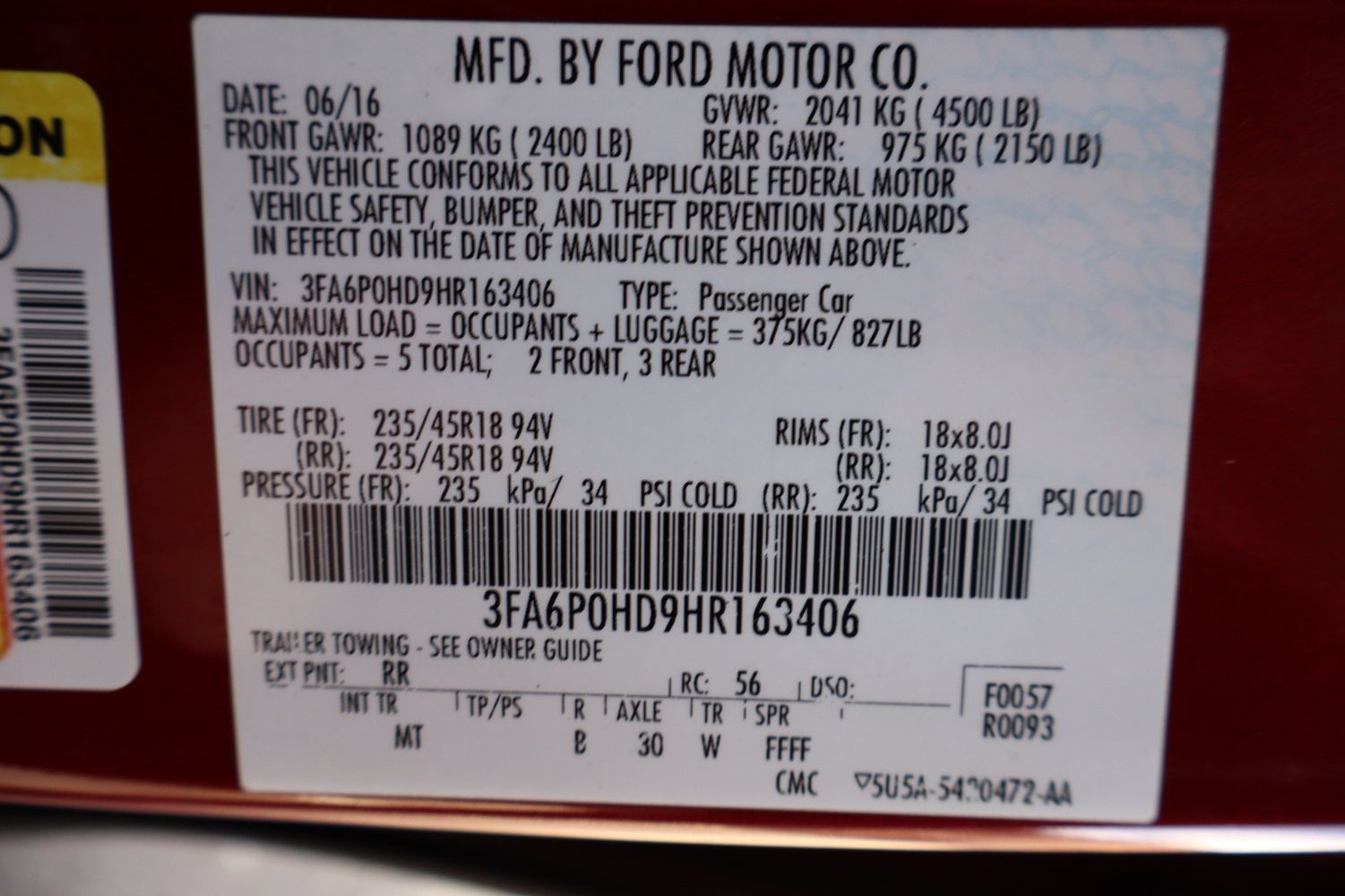 Rear seat upholstery: Cloth rear seat upholstery