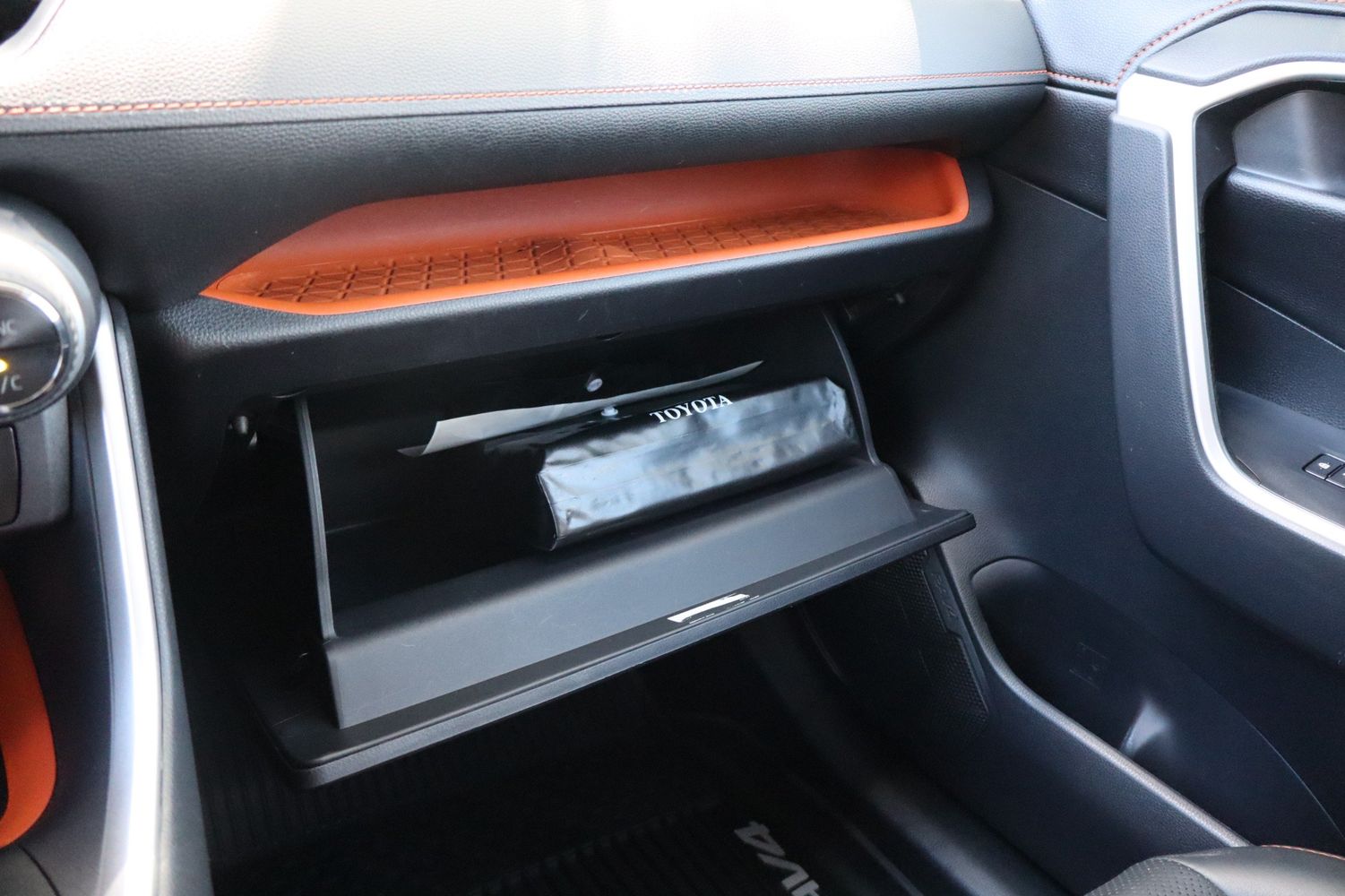 Floor console storage: Covered floor console storage