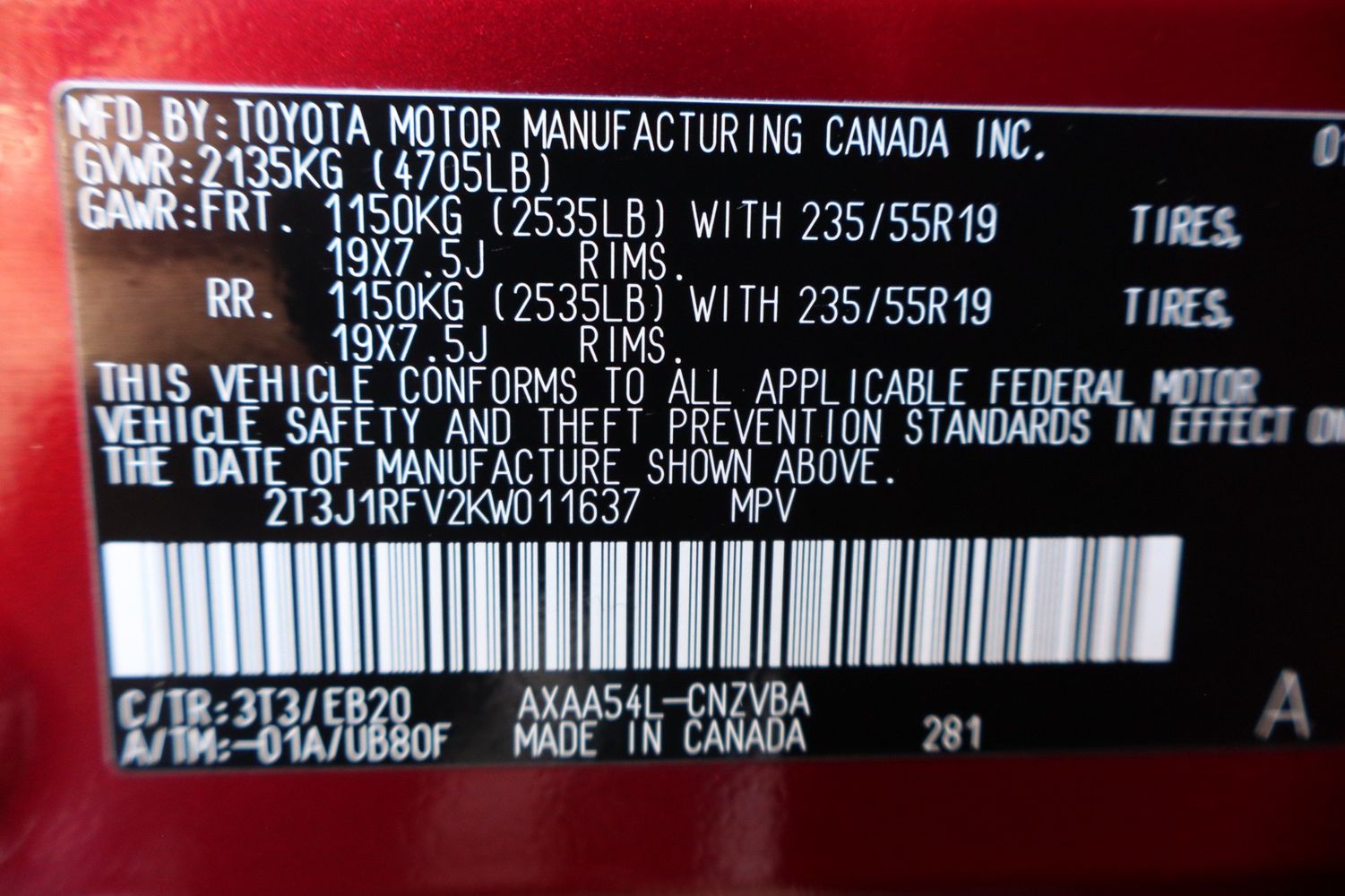Cargo floor type: Carpet cargo area floor