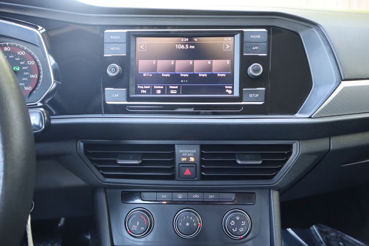 The 2019 Volkswagen Jetta is a stylish and practical compact sedan that delivers an excellent balance of comfort, efficiency, and modern technology. Completely redesigned for the model year, it features a sleek exterior with sharper lines and a more refined presence on the road. Under the hood, a turbocharged engine provides smooth and responsive performance, making it well-suited for both city driving and highway cruising. One of its standout qualities is impressive fuel efficiency, with around 34 mpg combined, helping drivers save on fuel without sacrificing capability. Inside, the Jetta offers a spacious and comfortable cabin with user-friendly features like a touchscreen infotainment system, smartphone integration, and available digital displays. The ride quality is smooth and composed, giving it a more upscale feel than many competitors in its class. Overall, the 2019 Jetta stands out as a reliable, efficient, and well-rounded sedan ideal for everyday driving.
