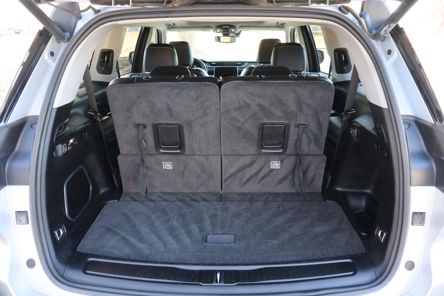 Third-row seatback upholstery: Carpet third-row seatback upholstery