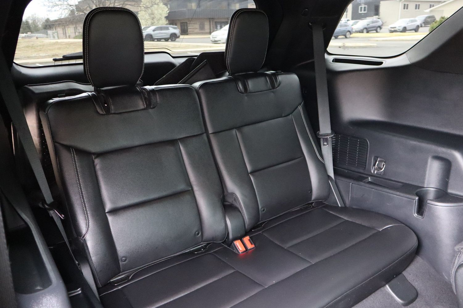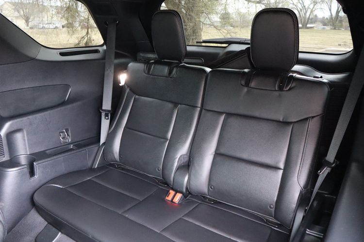 Third-row seat upholstery: Simulated suede and leather rear seat upholstery