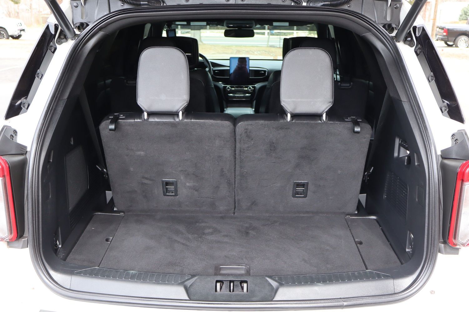 Third-row seatback upholstery: Carpet third-row seatback upholstery