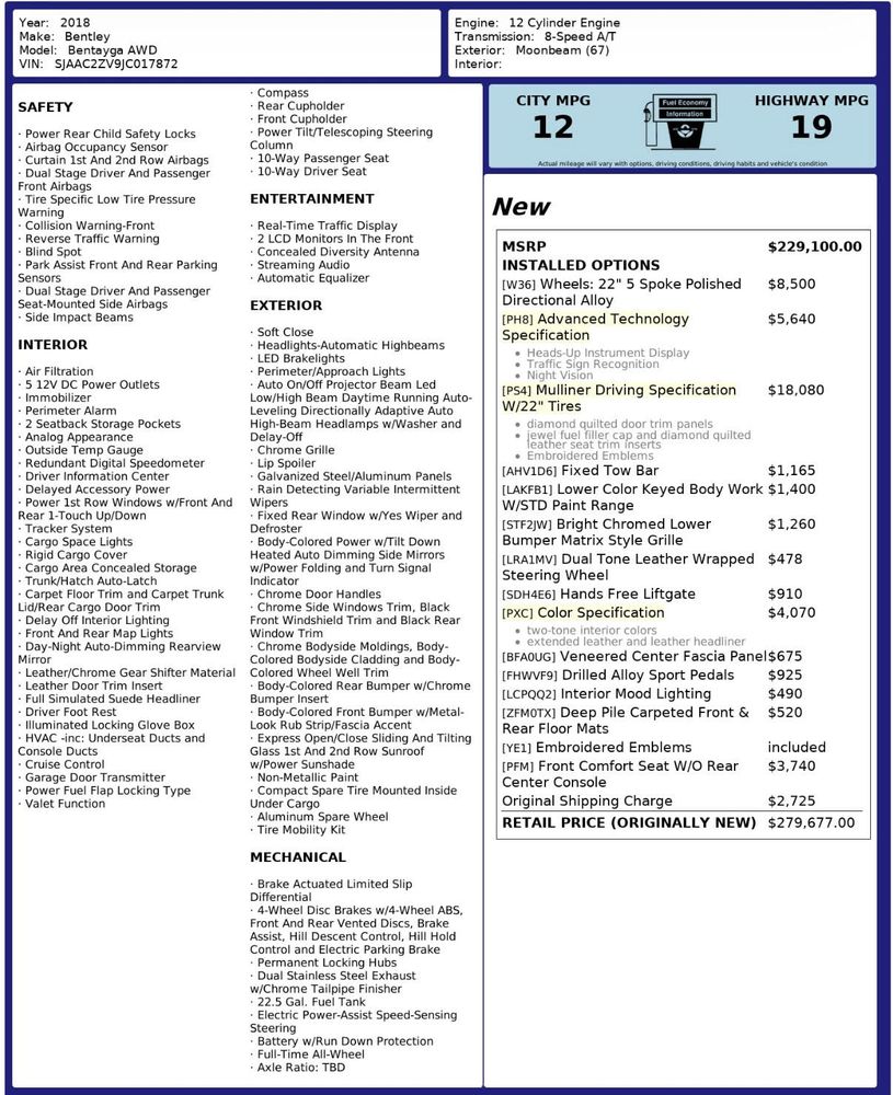 This 2018 Bentley Bentayga W12 Signature delivers an extraordinary blend of handcrafted luxury, commanding performance, and unmistakable prestige. Powered by the formidable W12 engine, it offers smooth, effortless acceleration with refined strength that makes every drive feel confident and composed. The Signature trim highlights Bentley’s dedication to detail, with premium leather upholstery, exquisite wood veneers, and precision metal accents throughout the cabin. Seating is exceptionally comfortable, creating a serene environment for both driver and passengers, whether on short trips or long journeys. Advanced technology integrates seamlessly with classic design, providing modern convenience without sacrificing timeless elegance. The ride quality is remarkably smooth, absorbing road imperfections while maintaining precise control and stability. Exterior styling is bold yet sophisticated, reflecting Bentley’s iconic design language and upscale presence. This Bentayga represents elite craftsmanship and performance, making it an exceptional choice for those seeking refined luxury, powerful engineering, and an elevated driving experience that stands apart from the ordinary.